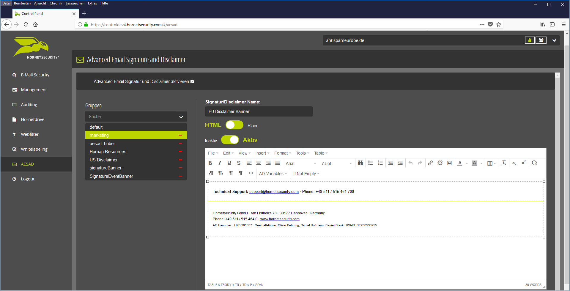 Bereits vorhandene Disclaimer-Daten können bequem über einen “What You See Is What You Get”-Editor importiert werden.