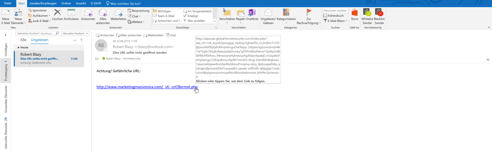 Zusätzlich werden Internetaufrufe aus E-Mail-Anhängen mit der URL Scanning Engine geprüft. Ein angehängtes Dokument wird in seiner Originalform belassen und ausschließlich das Ziel der enthaltenen Links wird geprüft.
